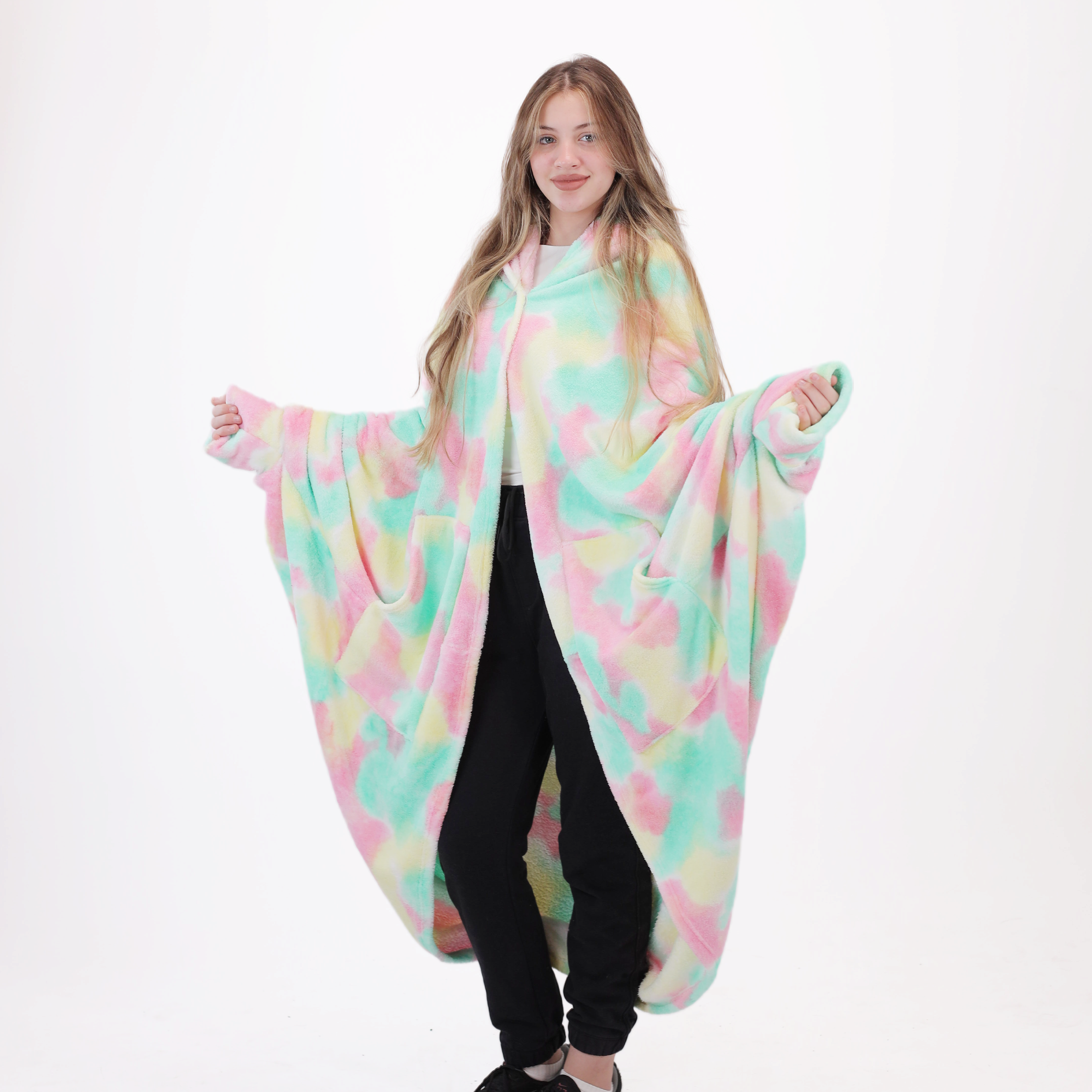دفاية هودي قابلة للإرتداء – Hoodie Blanket – مقاس واحد مناسب للجنسين – Green tie dye